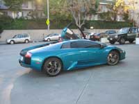 ![]() | LAMBORGHINI Murcielago 40th Anniversary (2003) (Los Angeles, CA / March 8, 2006) - Part of a series of Lamborghini limited edition anniversary models including the Countach 25th Anniversary and the Diablo SE30, this rare Murcielago is easily recognized by its Verde Artemis (jade green) special effects paint and grey anthracite rims. Production was limited to only 50 units. I heard this car's engine before seeing it at the gas station in Westwood Village, and immediately ran to the scene to shoot pictures. As shown in this picture, the owner backed up the car leaving the vertical door open. It received plenty of attention from pedestrians and other drivers as it sped away towards the Bel-Air area. |