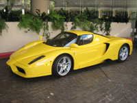 ![]() | FERRARI Enzo (2002-2004) (Beverly Hills, CA / October 3, 2006) - Every car fanatic has heard of the Enzo, the latest in a line of Ferrari supercars including the F40 and F50. Only 400 were built, making it an instant collector's item. The car's value quickly doubled its $643,330 price tag. With a carbon fiber body, Formula 1 technology, and a newly developed V12 capable of almost 220 mph, the Enzo is considered by many one of the greatest supercars ever made. Almost all Enzos are red or yellow, even though a few black, blue, and silver examples exist. This example is particularly unique, as it is the only one built with a yellow (giallo Modena) exterior and a tan interior. The car had been seen previously by other carwatchers, who caught it parked in Malibu and driving around Beverly Hills. I found it at the Beverly Hilton during a carwatching trip to the Golden Triangle. Even though there is almost always at least one exotic parked at the hotel, something this expensive, fast, and rare is always a surprise. |