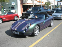 ![]() | TVR Tuscan (2000-present) (Beverly Hills, CA / March 2, 2007) - If you're a fan of small independent British sports car marques, then chances are you've fallen in love with a TVR at least once. The only problem is that TVR's were never sold in the United States, and it would be nearly impossible to get one registered for street use. TVR's have no airbags, traction control, or anti-lock brakes, because the company believes they are unnecessary. The American government may frown upon this philosophy, but to many enthusiasts it is the key to the ultimate driving experience. I found this rare Tuscan speeding down Rodeo Drive and pursued it for several blocks until I got several good pictures of it. It had been spotted a few times before by other car spotters, but so far these are the best pictures of it on the web. The Tuscan became popular after John Travolta drove one in the film Swordfish. TVR provided three of four identical cars for use in the movie, and the cars were supposedly all shipped back to Blackpool after the filming was done. Needless to say, it is almost impossible to find one driving down American roads, even in a city where exotics are an everyday sight. |