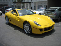 ![]() | FERRARI 599 GTB Fiorano (2007-present) (Beverly Hills, CA / May 19, 2007) - The latest in a line of V12-powered Ferraris including the Testarossa and the 550/575 Maranello, the new 599 GTB Fiorano keeps the front-mid-engine layout of the Maranello series, but uses a revised version of the Enzo's engine that produces 611 horsepower. Its design was largely based on aerodynamics, with unique features such as a pair of buttresses along the rear windows that help with stability. The 599 is the most powerful front-engine Ferrari ever, and has been proven to outperform even the F40 supercar. Not long after its introduction, the 599 is already becoming a common sight in Beverly Hills. This is the first of two I saw on the same Saturday afternoon, and what caught my attention first was its yellow paint, which is still relatively rare compared to the more typical colors. Parked quietly in an alley, it was almost completely hidden from public view, except those who could recognize its rear design from far away. On the street, this car is sure to grab plenty of attention, and it clearly offers the performance to deserve it. |