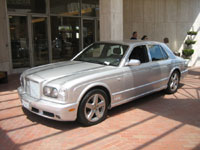 ![]() | BENTLEY Arnage T24 Mulliner (200#) (Beverly Hills, CA / April 27, 2007) - To commemorate the marque's sixth win in the 24 Hours of Le Mans, Bentley built a special edition of the Arnage T. The T24 Mulliner is most easily recognizable by the unique vents in the front wings, with a Union Flag badge on top. Much of the car's chrome, including the headlight and taillight surrounds, is replaced by body-colored inserts. Also, it has a unique rear bumper with four exhaust pipes, emphasizing its performance capabilities. This T24 Mulliner was spotted at a valet parking area behind a store, parked next to three other Bentleys - a Continental GT, a Flying Spur, and a second-generation Azure. Bentley built a handful of these special editions for Europe, but only 24 were bound for the US. While there is no doubt Bentleys are an everyday sight in Beverly Hills, special models like this are always a special find! |