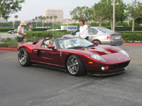 ![]() | FORD GTX1 (2007-2008) (Irvine, CA / August 4, 2007) - When Genaddi Design Group presented its open-top conversion of the already exclusive Ford GT at the 2006 SEMA Show, it received plenty of attention from the media and graced the covers of countless automotive magazines. Even though the company had already done several conversion projects for exotic vehicles such as an Arnage station wagon and a Phantom stretch limousine, the GTX1 was the car that brought it mainstream attention. The following summer, the first production GTX1 was delivered. With a design that remains true to the original GT while also allowing the roof to be removed or configured as a T-top, it was an instant hit among those who could afford it. While some may argue against the idea of customizing an already exotic car, most cannot deny that this design is simply amazing. Genaddi Design has already announced that in order to maintain exclusivity, production will end in August 2008, and only 600 GTX1's will be built - 500 built to customer specifications and 100 SEMA Editions in the original Valencia Orange paint of the show car. As shown by this example, Genaddi Design offers a wide array of options for its GTX1 program. In fact, the carbon fiber front splitter, custom rims and tires, "hidden" rear bumper and reworked interior are all among the options. Finished in special "Candy chrome red" (also an option) without stripes, this is definitely one of the most radical GTX1's built so far. Even though many aftermarket conversions make exotic cars depreciate more quickly, one like this is sure to stand the test of time and become a collector's item. |
