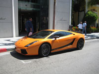 ![]() | LAMBORGHINI Gallardo Superleggera (2008) (Beverly Hills, CA / April 9, 2008) - Ever since production of the Gallardo began in 2003, Lamborghini has been keeping the model line fresh with several limited production models and special variants. The Superleggera began production in the summer of 2007, and even though it was not officially sold as a limited edition, it was built for not even one full year; Lamborghini announced in March 2008 that production of the Superleggera has ceased, probably to make room for future models. Only 172 were built, making it more rare than even the limited edition Gallardo Nera. Easily identified by special wheels, side graphics, and a rear spoiler, the Superleggera is, as its name suggests, a lightweight version of the standard Gallardo. The rear diffuser, undertray, interior door panels, and engine cover are all made of carbon fibre, and power is upgraded to 530 horsepower. Built to compete with cars such as Ferrari's F430 Scuderia, the Superleggera, like its rivals, is a rare sight compared to its standard models. Only 46 were finished in this eye-catching orange color, and it is sure to remain a highly desirable car among Lamborghini collectors. |
